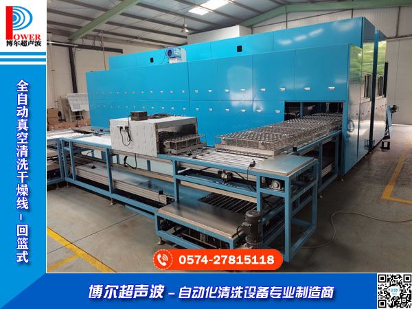 五金零件全自動(dòng)超聲波清洗機(jī) > 料籃自動(dòng)回送式工業(yè)零件清洗流水線